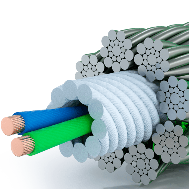为了执行控制或作业功能,这些钢丝绳内含一根或多根电导芯。